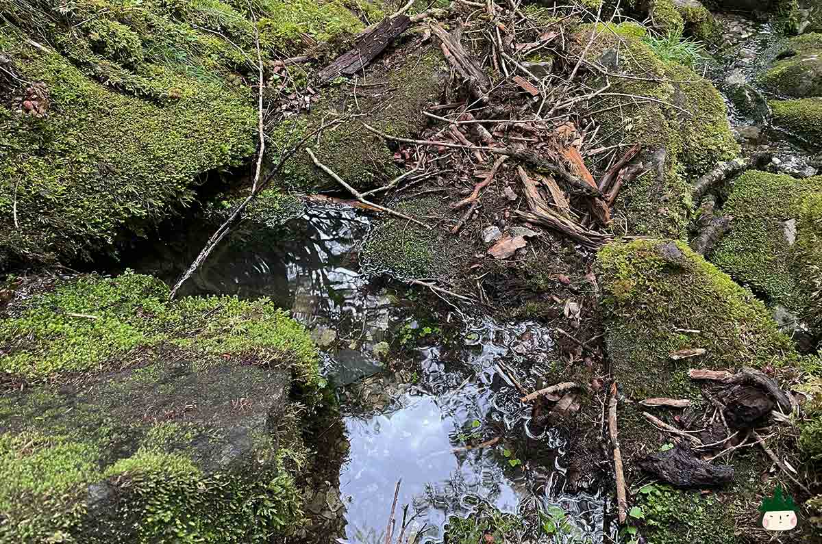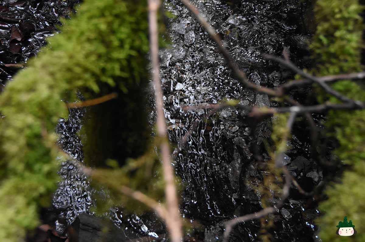 活水、水量豐沛、水質清澈,可以直接拿水袋接水