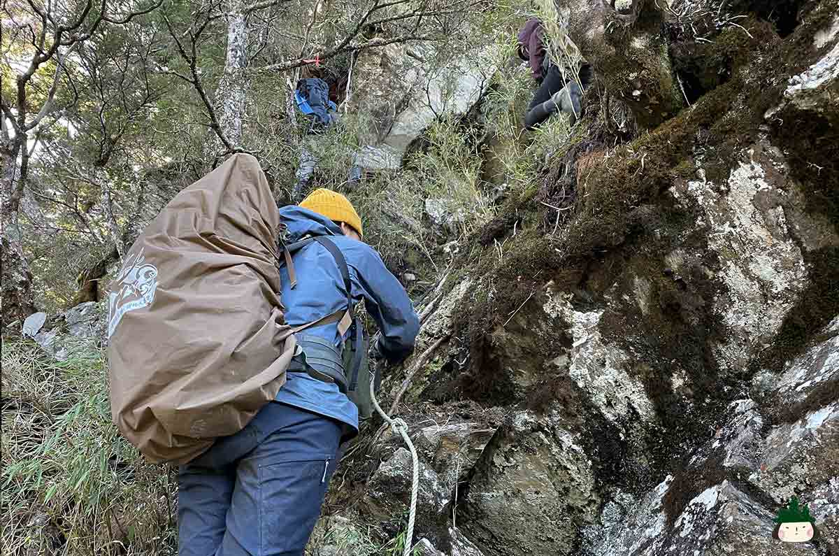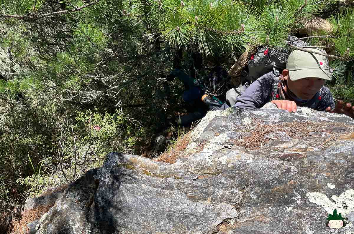 黑岩山至 加卑里山 | 3:00 (耗時) | 樹林段走完接瘦稜段 瘦稜段我們約走了一個小時 有四到五處較陡峭的岩壁,都是上攀 |