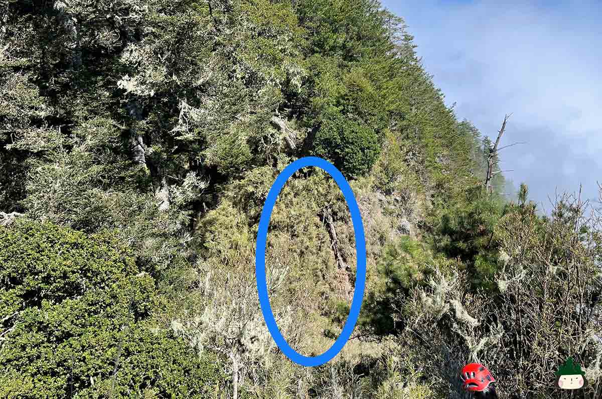 卯木山往小完美谷路上,約H2900往西北方向的谷下降海拔50公尺