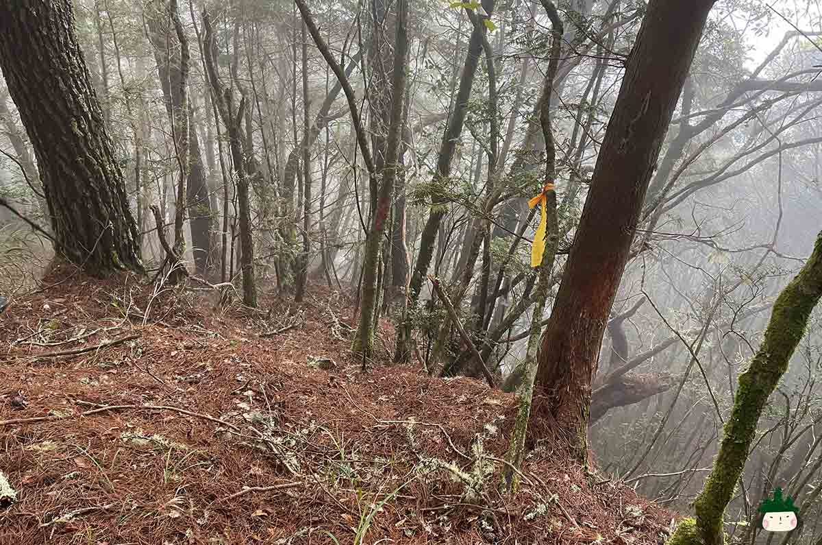 加卑里山過後下金馬隧道的路上,有布條可以跟,路徑明顯且開闊 ⇩