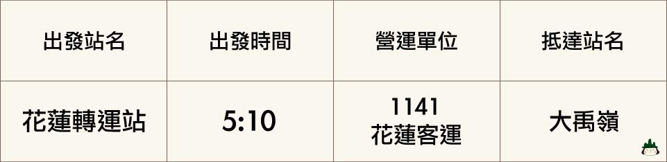 可以搭短程接駁 7人約1000元或是步行2.5小時至大禹嶺站搭車:)