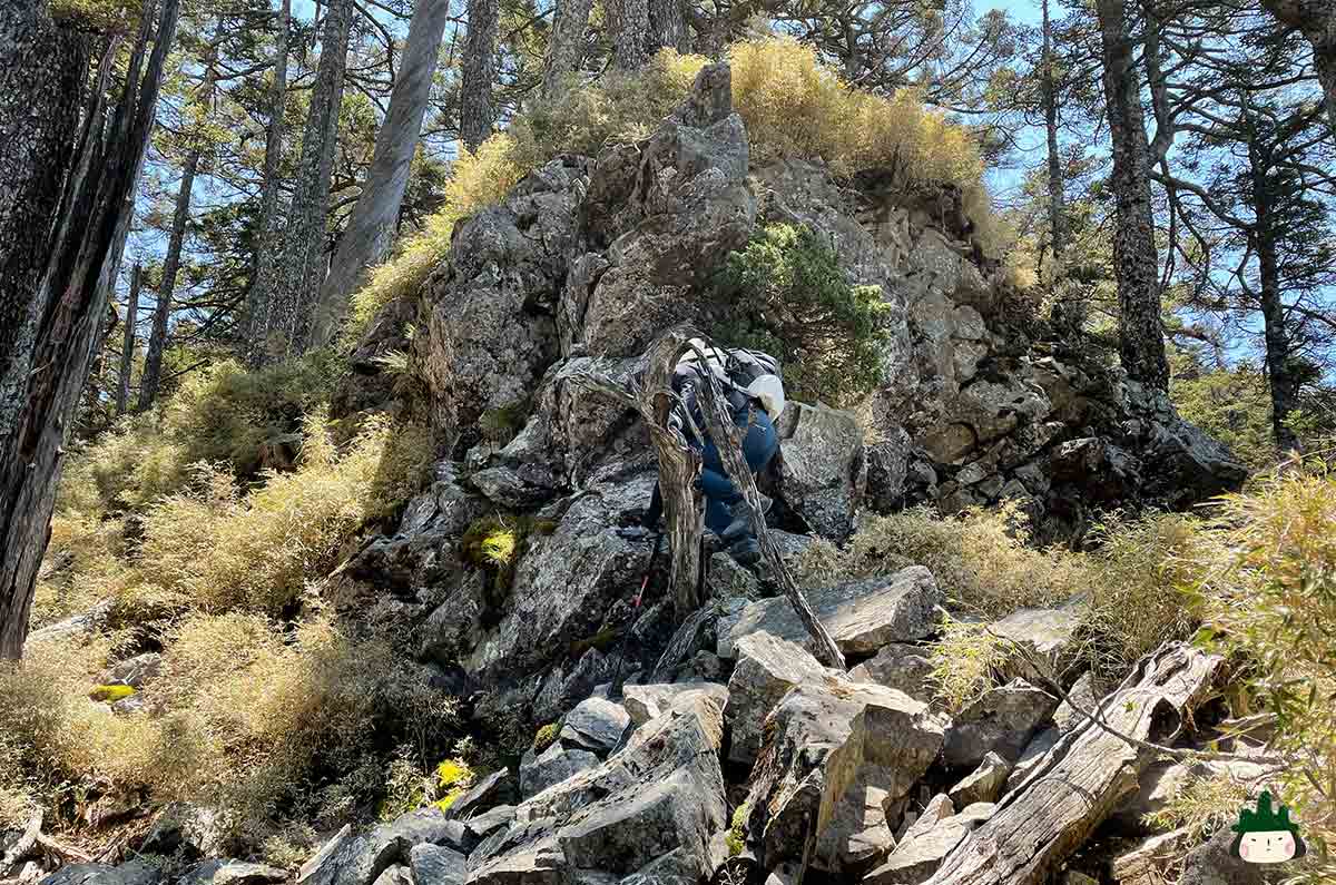 沿途沒有什麼展望,快到南玉山時才有風景可看。此路線不算是探勘,因為路徑明顯,完全不會迷路,有些許路段需要手腳並用,都屬於簡單好攀爬的